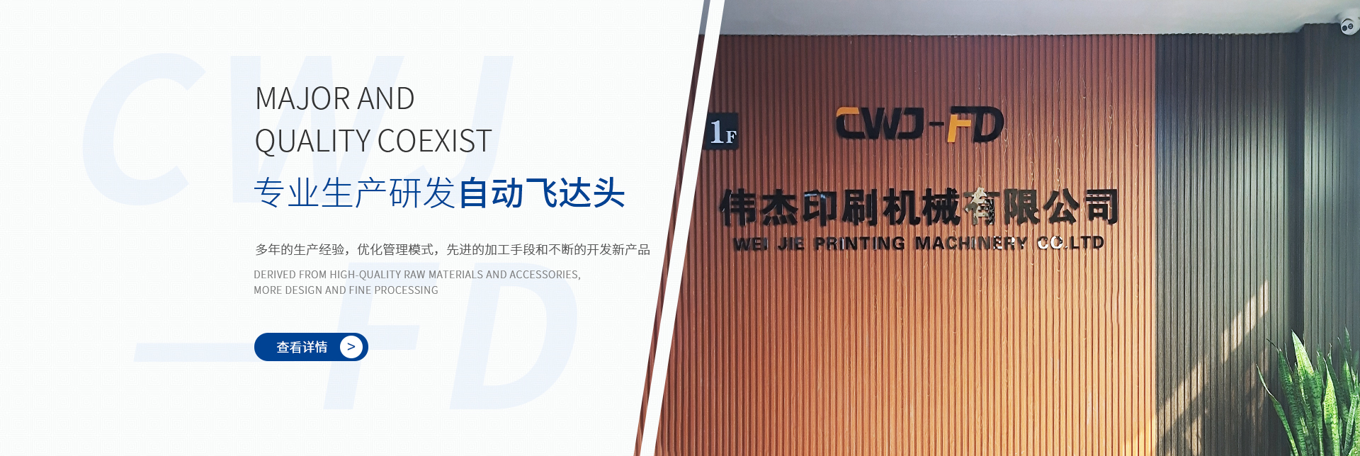 自企業(yè)創(chuàng)辦已來,憑借多年的生產(chǎn)經(jīng)驗,優(yōu)化管理模式,先進的加工手段和不斷的開發(fā)新產(chǎn)品,公司已經(jīng)具備了年產(chǎn)5000臺飛達頭的生產(chǎn)能力,產(chǎn)品品種已發(fā)展到二十多個系列五十幾種規(guī)格,分別適用于膠印機,覆膜機,模切機,裱紙機,絲印機,數(shù)字印刷機等機械,為國產(chǎn)印刷包裝機械實現(xiàn)自動化提高機器品質(zhì)提供了高質(zhì)的產(chǎn)品。